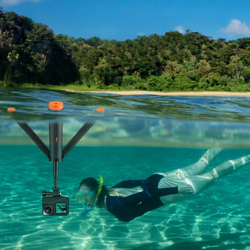 Le trépied flottant 4en1 de Telesin est un accessoire polyvalent conçu pour les activités nautiques et sous-marines. Il combine les fonctions de trépied, de perche télescopique, de poignée et de poignée flottante, et peut mesurer entre 22 et 61 cm en fonction de vos usages. Ainsi, vous aurez une flexibilité totale pour capturer des photos et vidéos sous différents angles, que vous teniez le trépied à la main ou non.