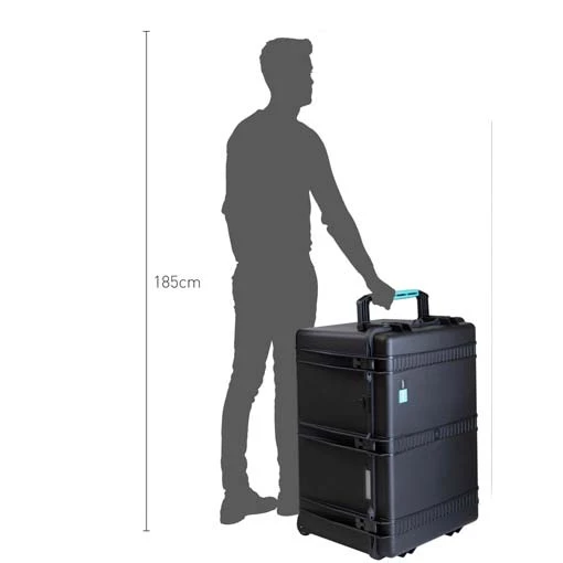 Vous pourrez stocker un large choix de matériel grâce à sa taille interne de 749 x 525 x 455 mm. Elle est fournie avec un kit de cube en mousse pour une meilleure protection. La valise dispose de roues intégrées pour une facilité de transport.